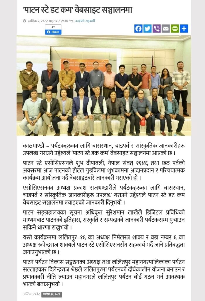 On the occasion of Dipawali, Nepal Sambat 1146 and Chhath, Patan Stay Association organized a greetings and introduction program. The event aimed to promote tourism in Patan by supporting Homestays, BnB-Guest houses, Apartments and Hotels, while preserving Newar culture and offering tourists authentic heritage experiences through coordination, promotion and digital platforms.